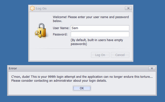 The XafApplication class now provides the MaxLogonAttemptCount property, which is set to 3 by default. You can modify this default either in code or via the Application Designer.