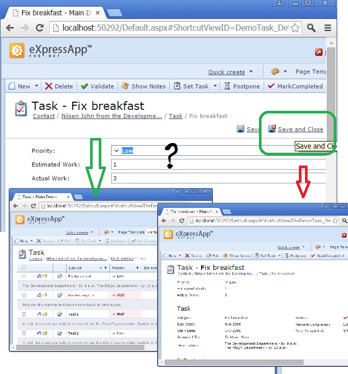 1. If the DetailView was invoked from a nested View, Save & Close will save the changes and close that DetailView.